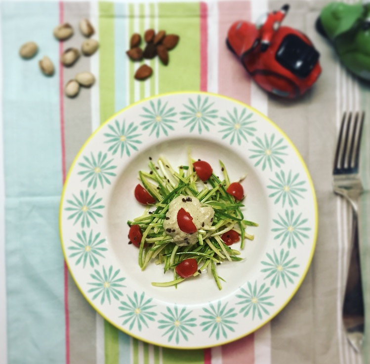 L’ultima conversazione a riguardo l’ho avuta con la mia amica Cinese di Hong Kong in visita a Roma , che è diventata vegetariana un anno fa, e vegana pochi mesi a seguire; mi ha detto quando si senta meglio, piena di energia e di come sia migliorata la qualità del suo sonno. L’ho ascoltata con un po’ di invidia, ed ho colto questa opportunità per provare con lei Crudo, un ristorante crudista vegetariano di Roma. Ho mangiato benissimo dal sushi al dolce, e questi spaghetti di zucchine sono una rivisitazione della ricetta Cacio e Pepe che ho assaggiato.