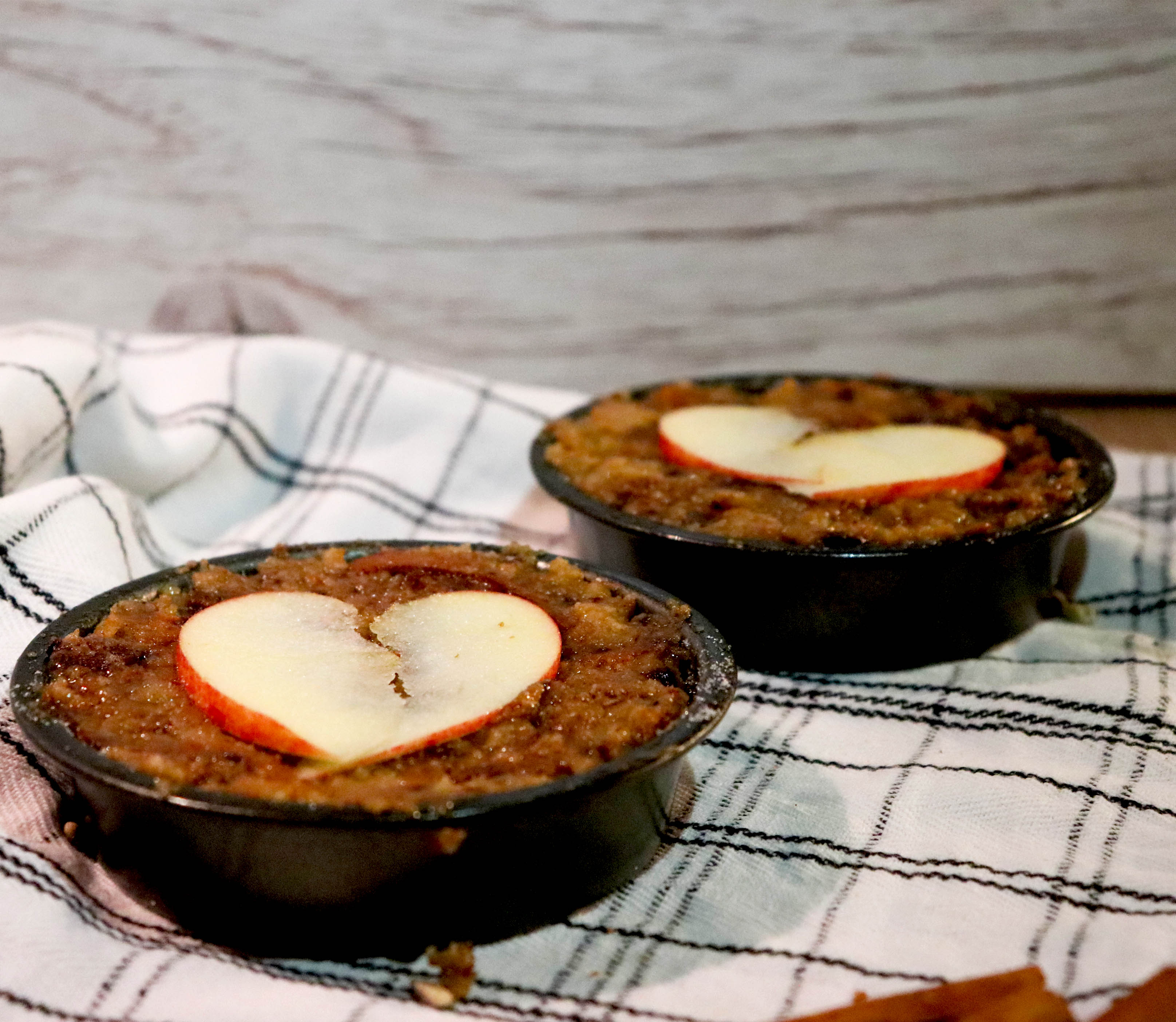 Imburrate gli stampini e riempiteli con l’impasto, decorate con le sfoglie di mele creando un cuore. Infornate per circa 20-30 minuti e fate la prova dello stecchino.